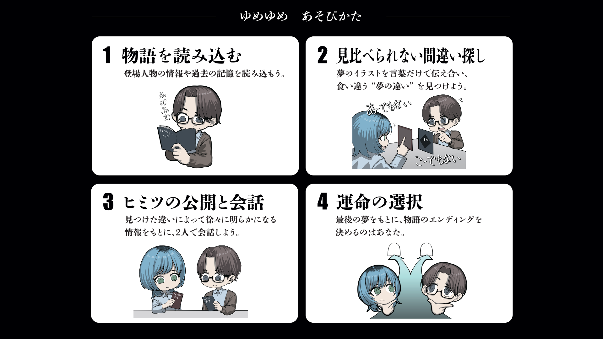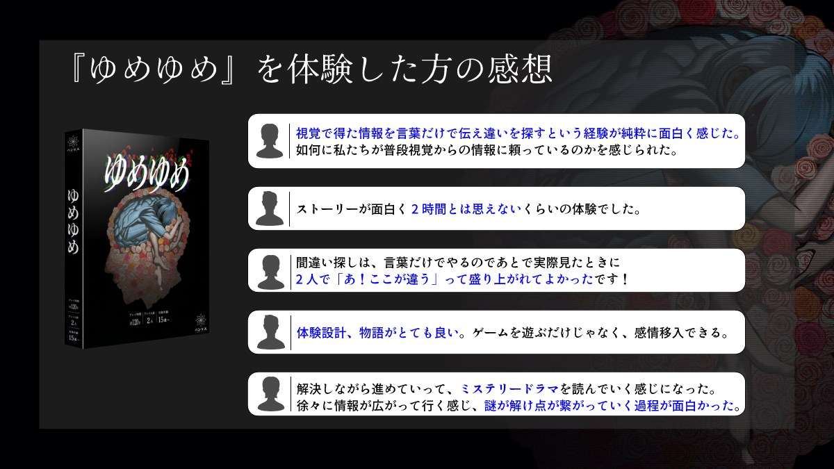 食い違う予知夢を伝え合う“見比べられない間違い探し”  ゆめゆめ
