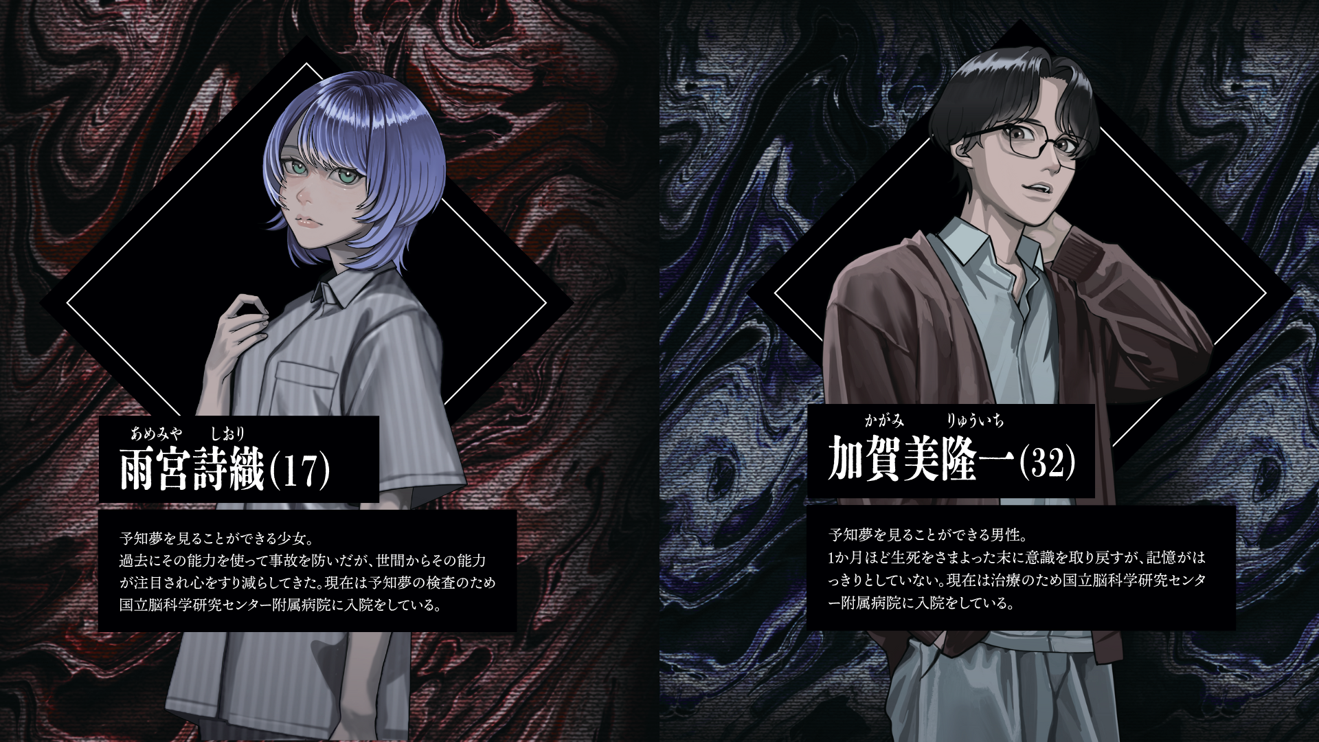 現在は予知夢の検査のため国立脳科学研究センター附属病院に入院をしている。