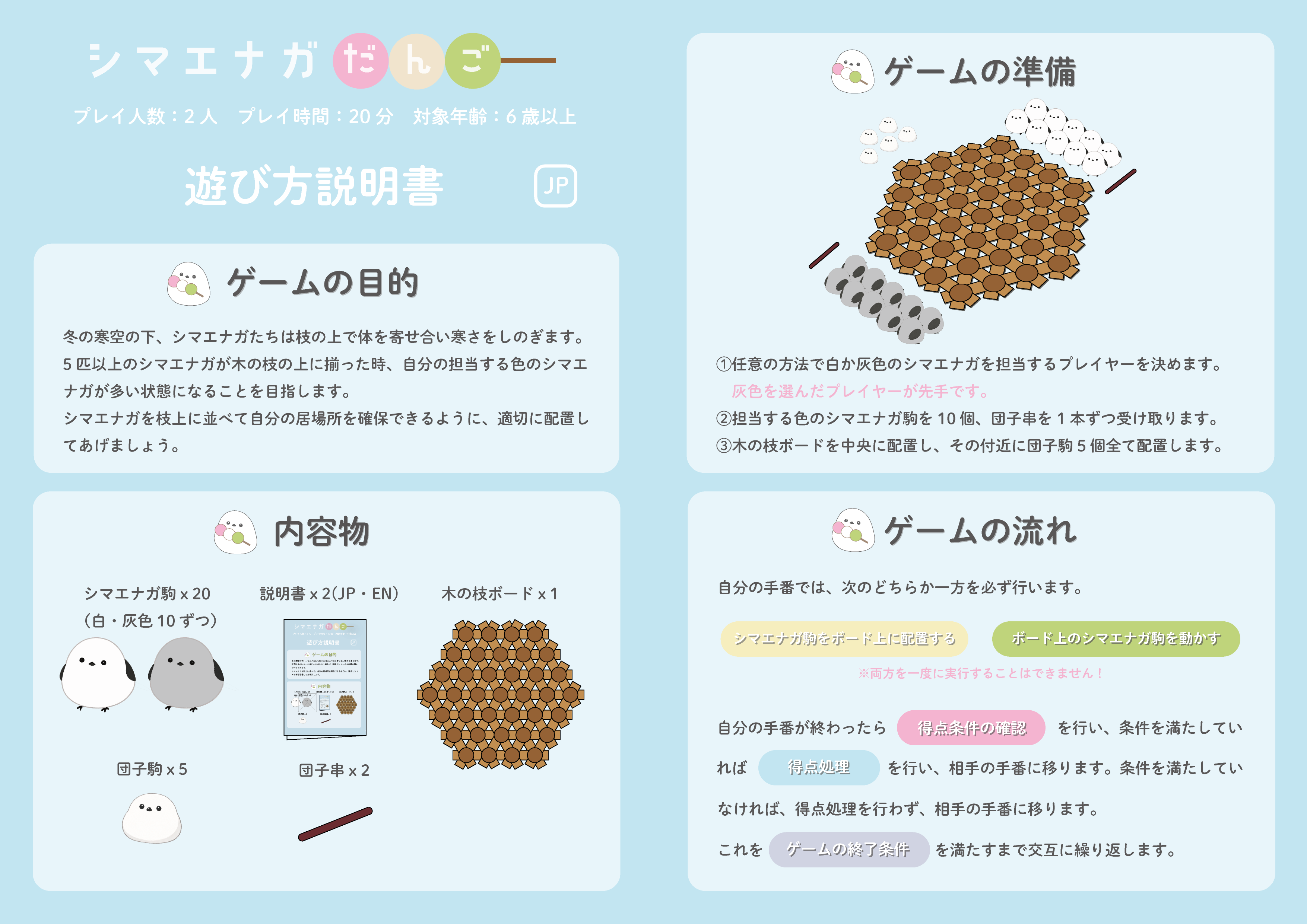 ゲームマーケット2026春にて販売予定の新作「シマエナガだんご」のルール説明書を公開します!!