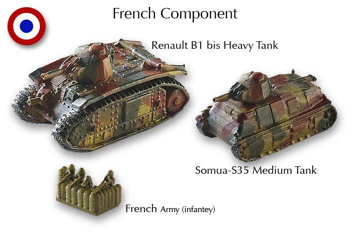 今回の新作は、WW2のドイツ電撃戦フランス侵攻をテーマに、高地の村で起きたフランス軍重戦車部隊VS黎明期のドイツ軍戦車部隊です。性能で勝るフランスルノーB1重戦車や、バランスの取れたフランス軍中戦車ソミュアS35、ドイツ軍は直前にポーランド軍から鹵獲した、軽戦車や開発したばかりの3号4号戦車を駆使して戦います。ドイツ軍の戦車砲では、装甲の厚いフランス軍戦車部隊の装甲を正面から撃破できません。数滴優位性で揺動したり待ち伏せしたりして、ドイツ軍の対戦車砲にフランス軍戦車の弱点である側面から射撃したり工夫して戦います。フランス軍はなるべく距離をとり、遠距離から射撃してドイツ軍を撃破していきましょう。