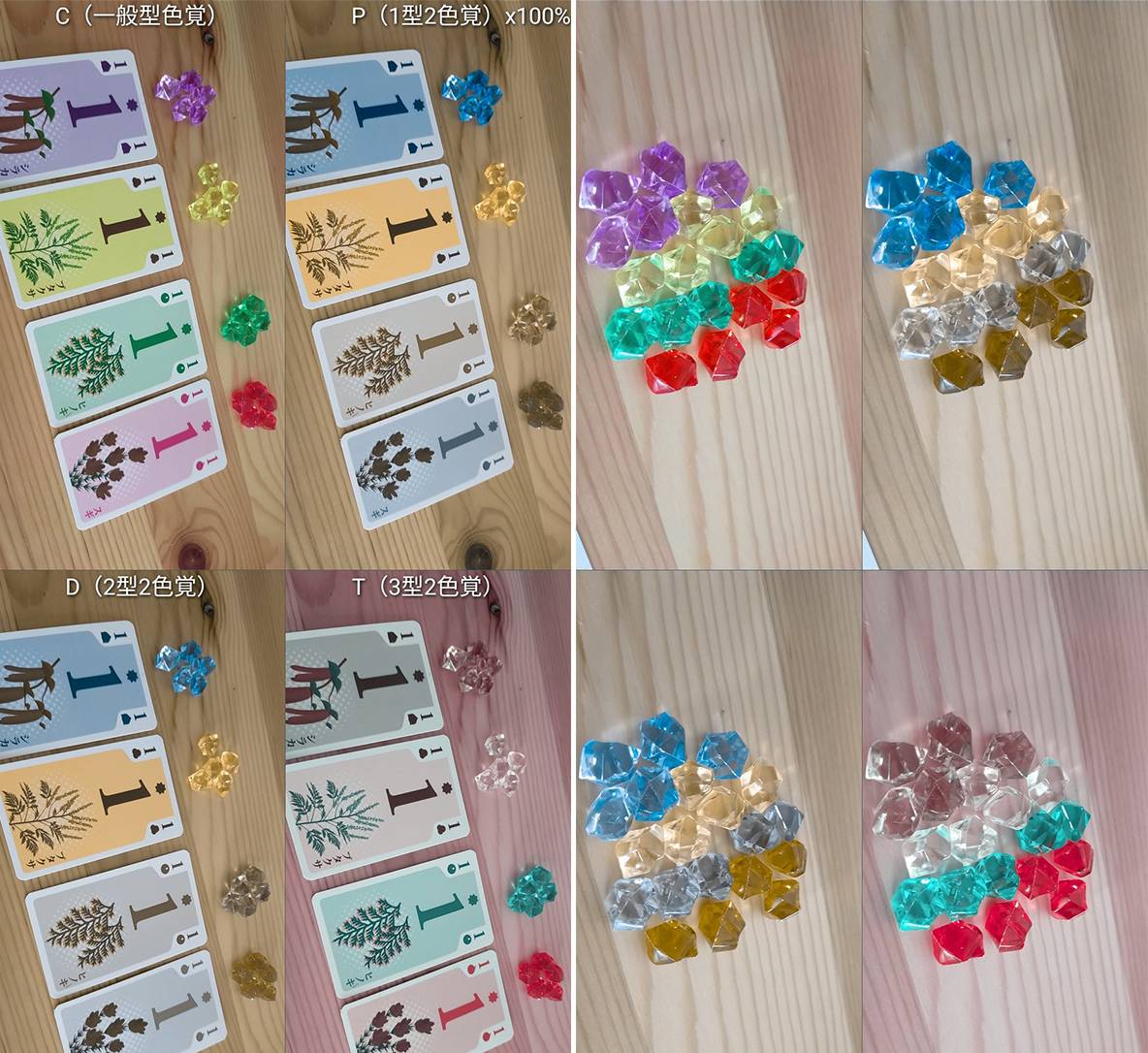 これが正解かは分かりませんが『花粉症バースト』ではカードと花粉駒のクリスタルの駒の色に関して色覚対応を施しました。