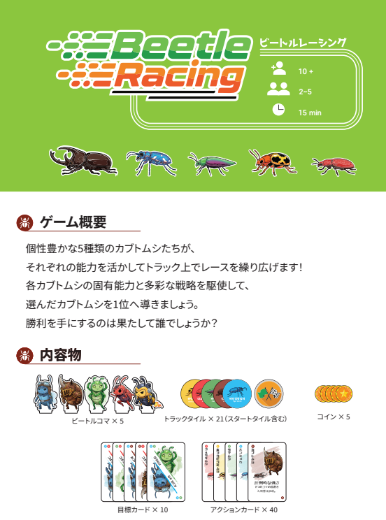 - [両日-W21] Up and Up - 可愛い虫たちが大激突!『ビートルレーシング』ルールブックを電撃公開!