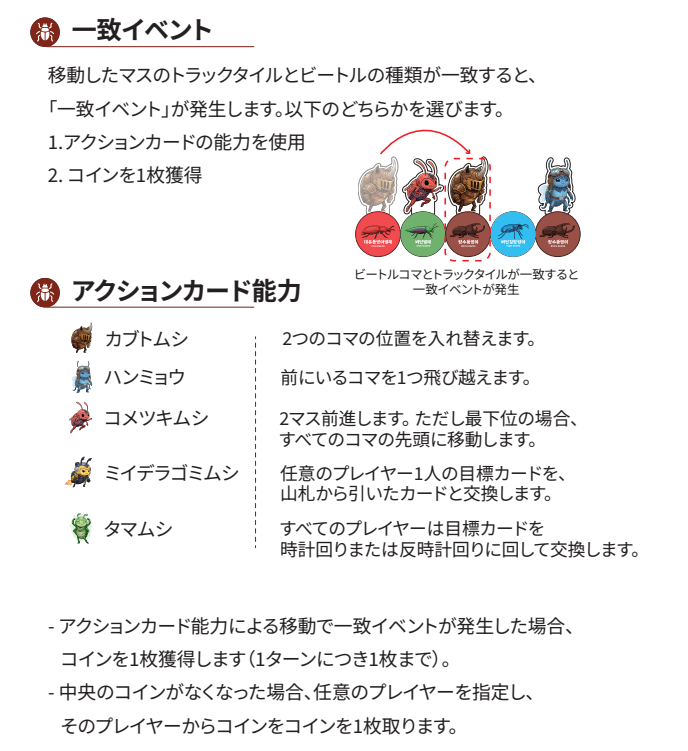 また、甲虫たちの個性を活かした『能力カード』も大きな魅力ポイントです。