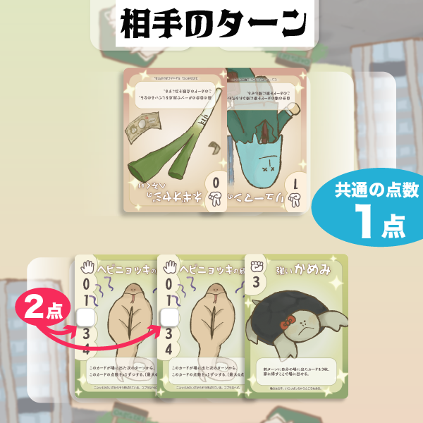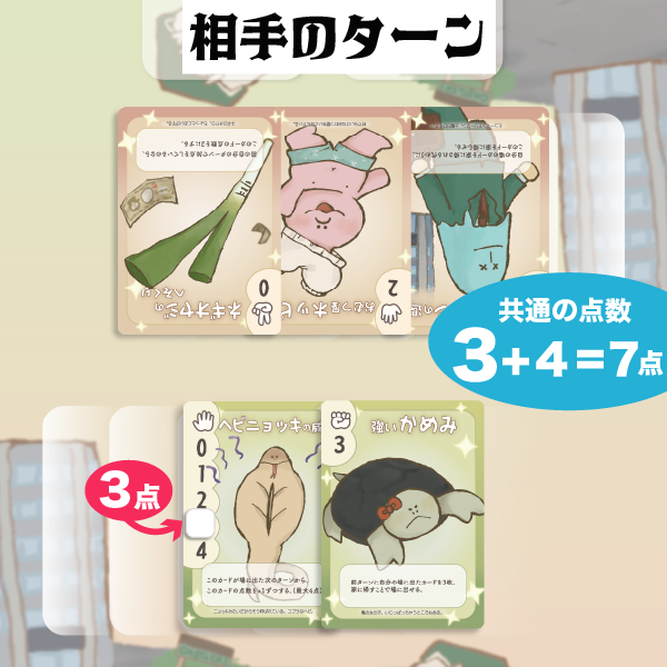 相手の場に「パー」のカードがあって「強いかめみ」を