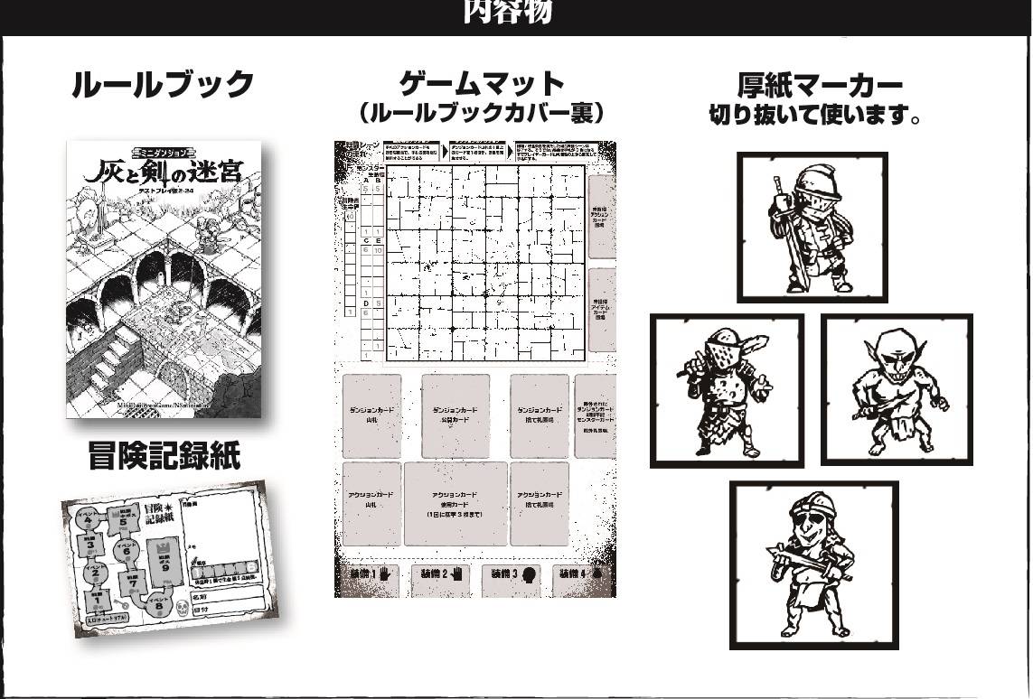 - ソロゲーム「ミニダンジョン」&シナリオ1「灰と剣の迷宮」を発売開始予定です。