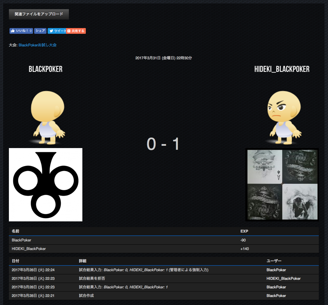 敗者が承認してくれない場合は、運営に問い合わせ(ページ末尾参照)をして、結果を承認することができる。