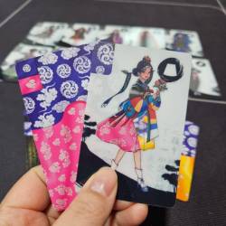 - 簡単なルールで20分で楽しめるデザイン競争戦略ゲーム<韓服ランウェイ>プラスチックカードと布カードを組み合わせて一つのチマチョゴリを作ります。 韓服セットを作成すると影響力トークンを1つ獲得し、スタイルカードに応じて能力を使用します。誰かが韓服を10着作るとゲームが終了し、各色ごとに影響力の合計が高い人がその色の勝点を獲得します。影響力トークンは1~4、-2、-3があり、公開されているトークンもあれば、非公開で入手する状況もあります。韓国では、資金調達額 2,151,167円を達成したゲームです。ブースU08にお越しいただければ、プロモカードパック2種類とアクリルスタンドをご覧いただけます。Promo Card Pack II Acrylic Standee Setボックスの前面が透明になっています。カバーアートを変更でき、直接色を塗ることもできます。 ブース [U08]東京ゲームショウでお会いできます。JoyHunterGames (@JoyHunterGames) / X 日本語のルールブックがあります。공지사항 : 조이헌터게임즈 <- Link