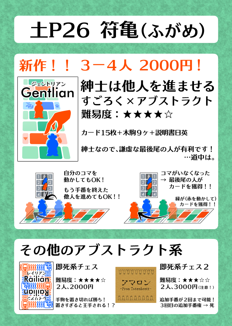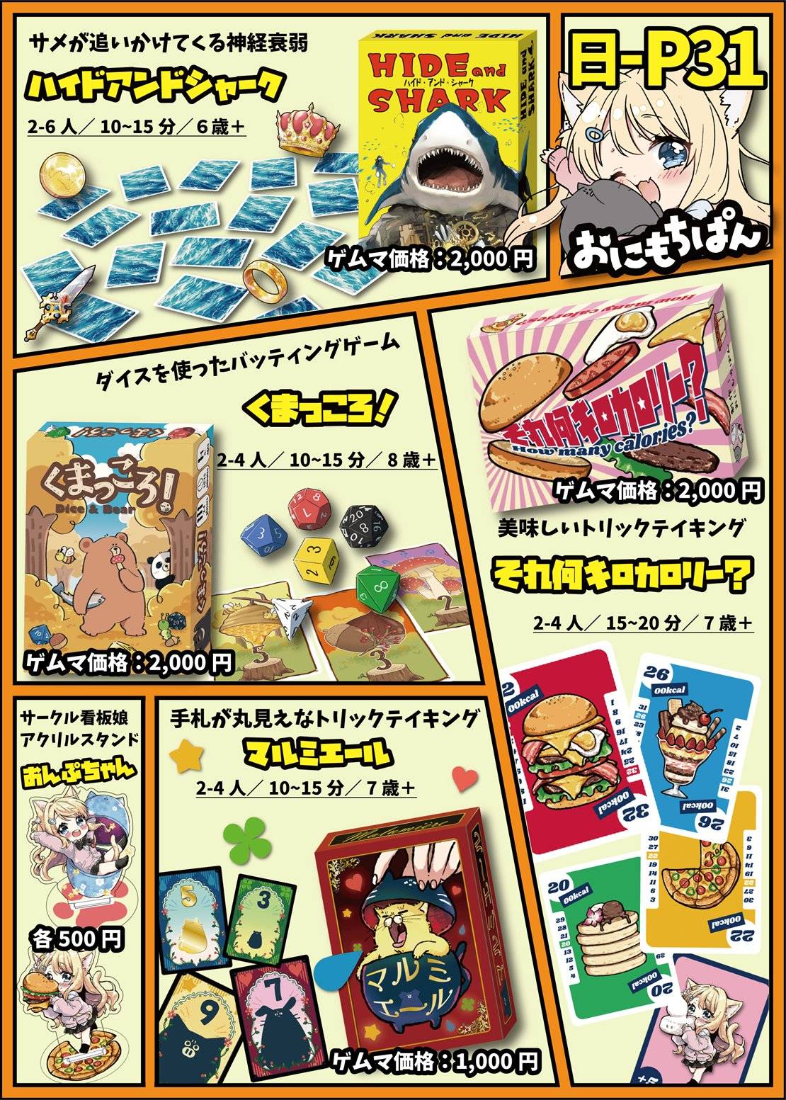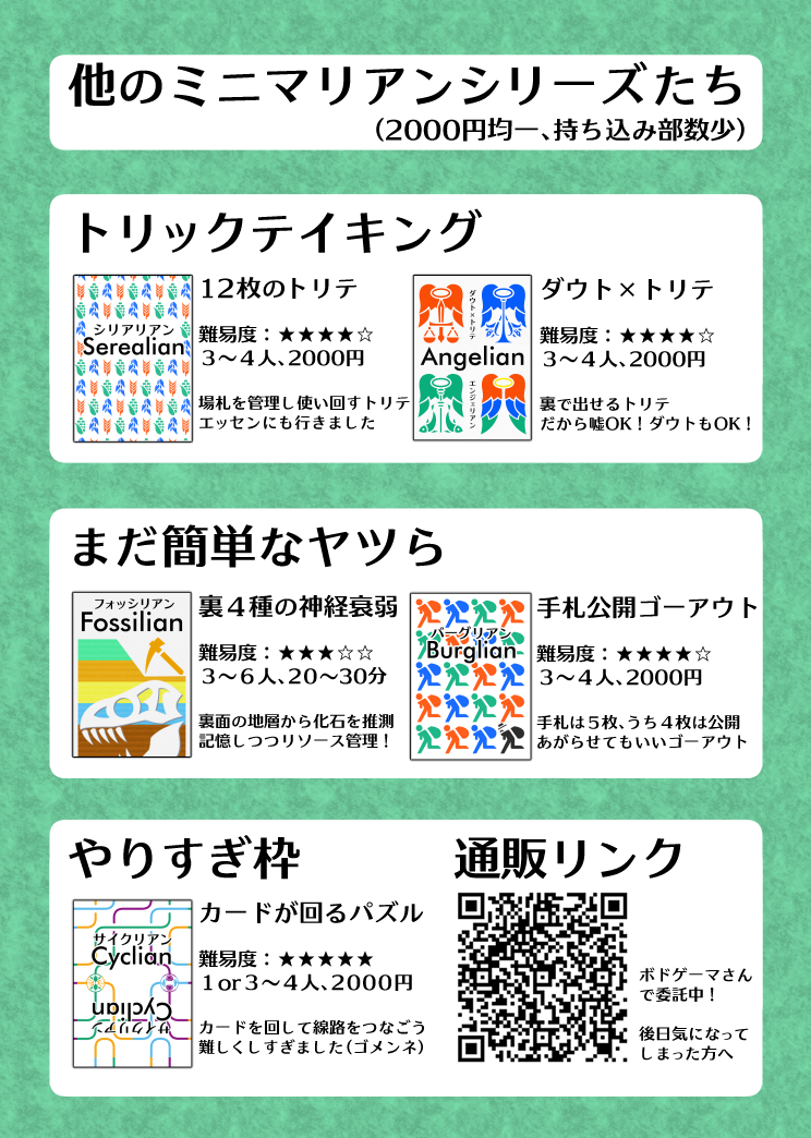 そのほか、過去のゲームマーケットで販売した定番作も持ち込み予定です。