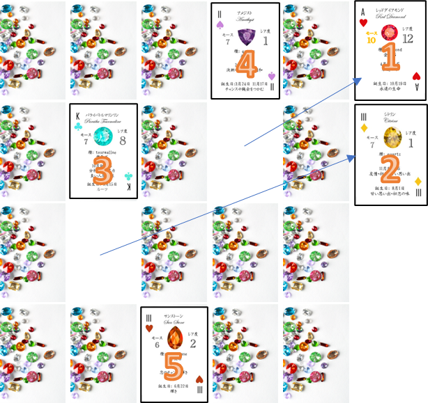 神経衰弱ゲームです。二枚のカードの レア度を足した数と、新しくめくったカードの合計が一致すると得点がもらえます。