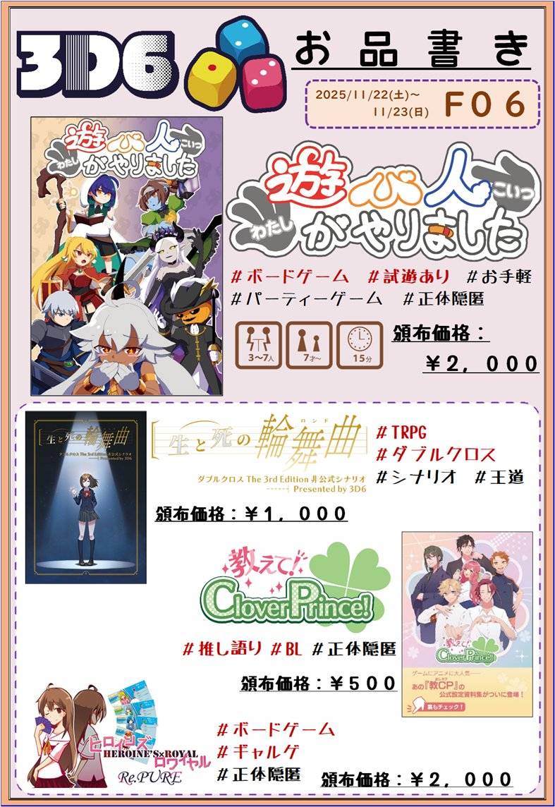 前回(2025春)のゲームマーケット分はおかげさまで完売させていただいたので今回もご準備させていただきました。