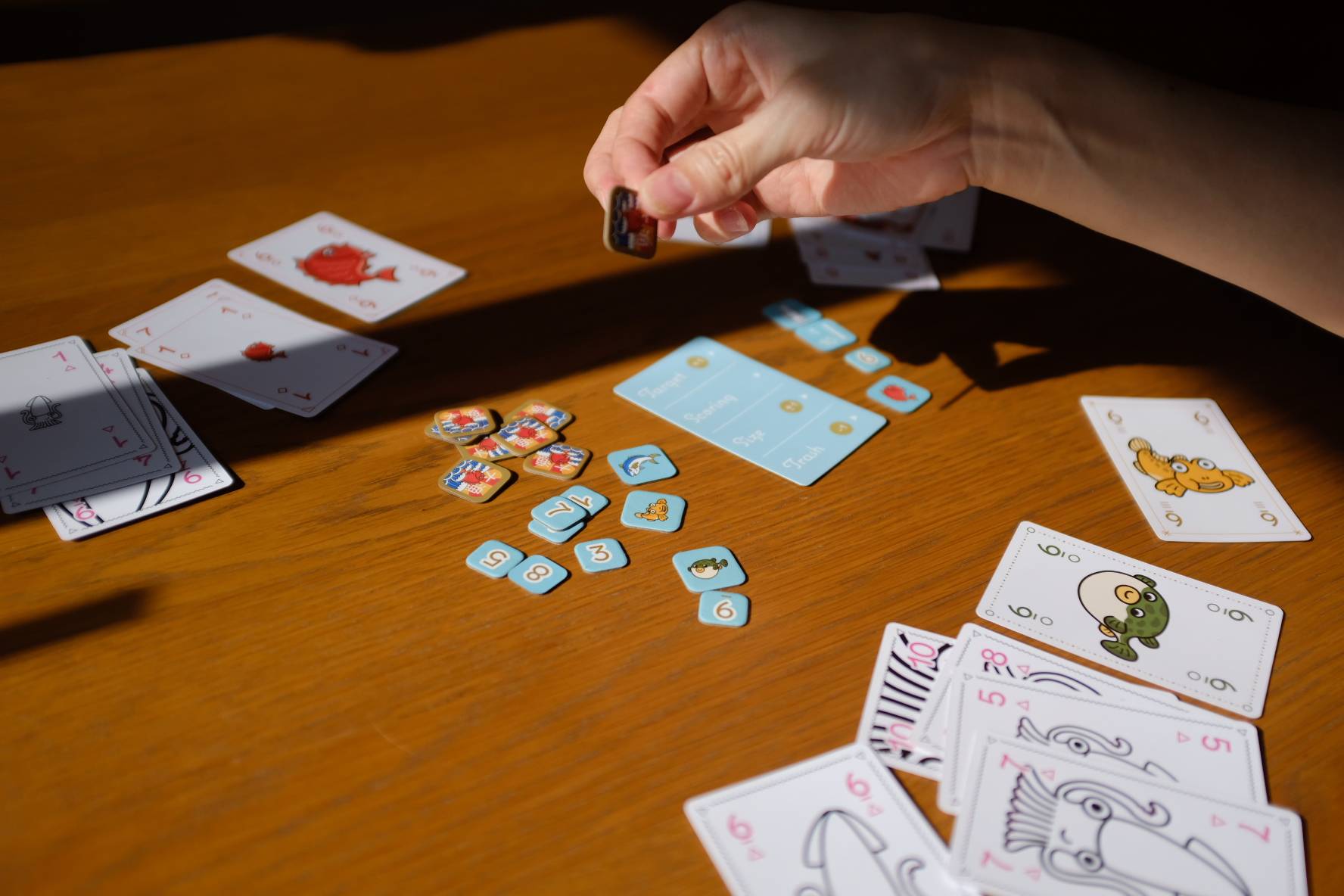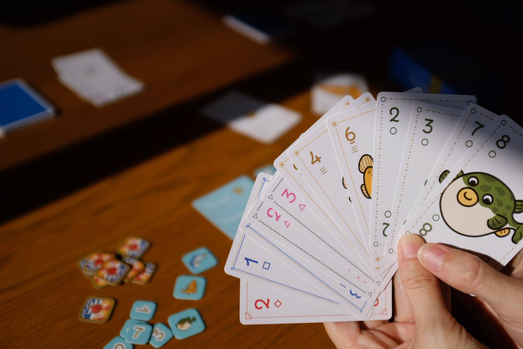 やることは、手番順に手札の数字カードを場に1枚出すだけ。