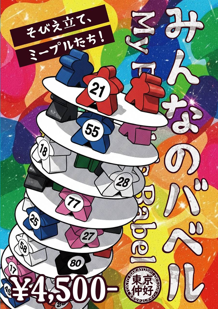 新作としてはミープル100個の協力バランスゲーム『みんなのバベル』を発表する予定です。