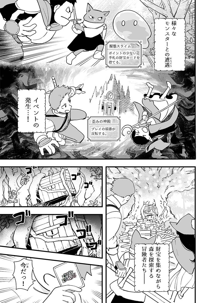 魔法の森を舞台に、冒険者・魔物・財宝をめぐる作品群です。