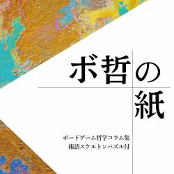 - コンポーネントは書き下ろしの本📕 ここに1人用ワードパズルを組み合わせました。まったく新しい試みにチャレンジします😊---『ボ哲の紙+術語スケルトンパズル』、ゲムマ2025秋のご予約を受け付け中です。🔗 ゲムマ2025秋 お取置予約フォーム 「この内容ならば、ぜひ紙で読みたい」ボードゲーム哲学(略称:ボ哲)のコラムを読んでくれた何人かの方が、そう言ってくれました。「ボ哲」とは、AIの時代にアナログゲームを、哲学や人文学という切り口で読み解く、読む遊びです。(なぜ読む遊びなのか? それはAboutボ哲やボ哲ページをご覧ください)この度、「ボ哲」コンテンツを紙の小冊子にした『ボ哲の紙』を販売いたします。『ボ哲の紙』の内容は、88ページの小冊子と、書き下ろしの「スケルトンパズル」です。このワードパズルは、小冊子に収載したコラムを読みながら、そこに登場する様々な「術語」——詳細は後述します——をマス目に埋めていく、1人用ゲームです。「ボ哲」コラムのテーマは、Web上で無料公開されています。ですから私たちは当初、Webにあればそれで十分だと考えていました。しかし、冒頭の言葉をくれた方々は、あえてこう言ったのです。「紙で。」と。その言葉が、私たちに「紙」というメディアの持つ、特別な意味を考えさせてくれました。 上記ページへのLink哲学とは、一つのテーマに対して、どこまでも深く思考を潜らせていく営みです。それは、次から次へとリンクを渡り歩くWebの閲覧体験とは、少し質の異なる時間を要求します。私たちが「ボ哲」を公開する場として、wikiツールであるCosenseを採用したのは、まさにその「脱線」を積極的に許容するためでした。思考のネットワークを、そのままの形で表現できるからです。 一方で、紙媒体では、その自由な「脱線」はできません。Webのようにハイパーリンクを直感的にたどることはできず、読者は、著者によって構成された一本の道を、自らのペースで進むことになります。だからこそ、今回の『ボ哲の紙』は、テーマはWeb上のものと同じですが、読む体験が異なるものになるよう、紙というメディアの性質に合わせて、使うフレーズ・言葉の運び方・トーンなどを全面的に再編集いたしました。結果的に、コンテンツから受け取る“感じ”がずいぶん異なるものとなり、新たな価値が生まれたことに、私たちも驚いています。 『ボ哲の紙』目次 本書の目次の一部をご紹介しますと——🔹なぜボ哲は「読む遊び」なのか合目的でない / ルールが存在し、そして自由 / 言葉の仮想的な盤上遊戯🔹盤上の環境管理型権力規制と創造性は裏表 / ゲームデザイナーは建築家 / 規制と逸脱の緊張関係🔹レビューの「星」問題「星」の意味は恣意的である / レビューに潜む、感情と指令 / 「星」が参加する「言語ゲーム」🔹「デザイナーらしさ」って、どこからくる?面白さの「元型」 / 「面白さ」の文化的な偏り / 暗闇の中での跳躍 / 「らしさ」のありかなどなど。目次の全容は以下をご覧ください☺️気になるタイトルはありましたか?一つでも「おや?」と思うフレーズがもしあったなら、それが、この新しいゲームへの入り口です🙌あるいは、「なんだか難しそう…」もしかするとそんな印象をお持ちになるやもしれません🙏いつだったか私が初めてボードゲームに誘われてルールを聞き始めたとき、同じように最初に思ったのが「なんだか難しそう…」だったんですよ。が、今では重量級ゲーム沼へも誘う側で、「案外、やってみたら楽しいと思うよ!」とつい、言ってしまいます。哲学もボードゲームも似たようなものかもしれません。『ボ哲の紙+術語スケルトンパズル』は、哲学や人文学といった「私たち」に関することを語るときの言葉を使って、さまざまな側面からボードゲーム全般について新たな記述を試みた上で、1人用向けパズルゲームとして遊べるようにしよう!というプロジェクトです。どうか「難しそう」で周り右せず、少し立ち止まって、このいくつかのフレーズを味わってみていただけると嬉しいです。 術語スケルトンパズルについて さらに、哲学や人文学で使われるいくつもの術語。術語とは、テクニカルタームとも呼びますが、その専門分野の学術上で、特に限定された意味で用いる言葉のことです。これらは、その語や観念がもつ複雑な議論の背景をショートカットして了解を目指せる便利なワードですが、今回のワードパズルでは、一旦完全にその意味を解体し、単なる文字の連なりとして扱います。本来は絶対に接続しない言葉が、紙面という二次元空間上で交差するこのパズルは、「文章を読む」という行為を、意味の理解や暗記から、配置を操作する身体的な遊びへと変換する、私たちの新しい試みです。🔗 パズル詳細と簡単な遊び方 このゲームを特にお手にとって欲しい方 🔶 普段ボードゲームを遊ばれる方——「なんてこのゲームは面白いんだ!」その直感を、新たな言葉で語るためのヒントとな