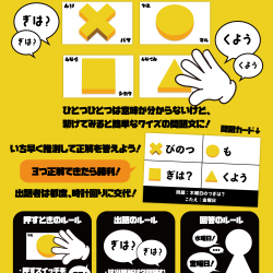 - 【土横丁03】出題者をボタンで操りながらいち早く正解を導く新感覚クイズゲーム『クイズ!ブブンブンカツスイッチ』の遊び方説明書を公開しました!