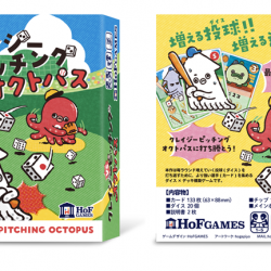 - こんにちは!マジめにかわいいボードゲーム!HoFGAMESのべこです!ゲームマーケット2025秋もだんだんと近づいてきましたね~そんな秋に向けた、HoFGAMESからの新作『VSクレイジーピッチングオクトパス』のブースカットを公開いたします!今度のテーマは野球とイカとタコ!?こちらは 1~5人用ダイス×デッキ構築ゲーム となっております。エスカレートするダイスロール!恐るべきタコピッチャーに負けないように、個性豊かな選手やコーチを集めて最強のチームを作ろう!そんなゲームになっております。お楽しみに!!