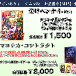 チキンレース系カードゲーム「泣けベンケイ」新作 ゲムマ2025秋 【M-15】1日目(土)