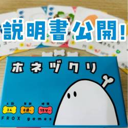 - こんにちは!FROX gamesのiwaです! 今回は食育系ボードゲーム「ホネヅクリ」の裏設定をご紹介しちゃいます! 「ホネヅクリ」はその名の通り、食べ物から得た栄養素を使って骨を作るボードゲームです。 悩みましたが今回は、本来は表に出すべきではないと思いつつ作者が思うホネヅクリの良さを語らせていただきたいと思います。 まずなぜ「表に出すべきではないと思うのか」は、ゲームの楽しみ方が限定されてしまうかもしれないからです。 作者ではない人が遊ぶことで、作者が想像もしていなかった面白さを見つけてもらえるかもしれない!「作者が良さを語る」は、この可能性を減らすかもしれないと思います。 …が!!!ここは裏バナシ!ゲムマはお祭り!今回は語らせてもらいます!知りたくない方はページを戻った方がいいかもです! では行きましょう! 作者的ホネヅクリの良さ①【食べ物イラストがかわいい】結構すごいかなーと思うんです。自分は食べ物が可愛いとか可愛くないとか思ったことがないので、笑「食べ物がかわいい」って良いところだと思っています。 作者的ホネヅクリの良さ②【食べ物カードの回転が早い】ゲームの性質上、がんがん食べ物を買ってがんがん消費する必要がある、と作者は考えています。その結果、どんどん食べ物カードが回転し、どんどん色んな買い物が出来る。結果、場が滞らず、サクサク進むプレイ感が生まれていると思います。2人用では割と珍しいのでは? 作者的ホネヅクリの良さ③【食べ物カードの栄養素のリアル】食べ物カードには、「納豆」と「海老とアボカドのサラダ」のように、ほぼ同じ栄養素で値段が違うなど、上位(下位)互換となるものがあります。でもこれ、遊んでみると分かりますが、その時々で欲しいカードが変わるんです。なるべく栄養的に正しくしたことも考えると、実生活までが楽しくなると思うんですよねぇ。 作者的ホネヅクリの良さ④【イベントカードコンボ】食中毒、品替え、再入荷、のことです。食べ物カード山札に混ぜ込まれることで、買い物後に突如現れることがあるカード達。食中毒は手札を捨てさせられ、品替えはお買い物エリアのカードが入れ替えられ、再入荷は捨て札と山札が合体します。何が起こるかと言うと偶然にもこのイベントカードが連続して出てくることがあり、ほぼ勝ち確定状態から逆転されることもあるんです!確率はとても低いんですけどね。でも、システム的に勝ちが近づくほどイベントカードが出やすくなっているのもポイントです。最後の最後の最後まで楽しめる!こだわってデザインしました! 作者的ホネヅクリの良さ⑤【食べ物が便利すぎる】ホネヅクリの目的、ホネを作るのにも、食べ物を買うコインを得るのにも、手札上限を増やすキンニクを得るのにも食べ物カードが必要です。この食べ物、ホネに使いたいけど今はコインにせねば…!いや、キンニクか…?のようなジレンマが付きまとい、この悩ましさが面白いと思うんです! 作者的ホネヅクリの良さ⑥【学んだ感じがしないのに身につく知識】ホネヅクリを遊んでいると、気付くことがたくさんあります。このあたりは散々今までのブログで語ったので割愛します。笑 作者的ホネヅクリの良さ⑦【豆知識】食べ物カードには全て豆知識が書いてあります。どれも参考にした文献がある信ぴょう性の高いもので、作者が「これ面白い!」と思ったものだけを書いています。なので当然作者は豆知識大好きです。笑 長くなってしまい失礼しました!作者はホネヅクリ大好きなもので。笑