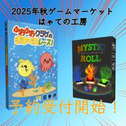 - こんにちは、はゃての工房です。このたび11月23日(日)に秋のゲームマーケットで初出展をいたします作品は「ふわふわクラゲのきまぐれレース!」ですオリジナルのクラゲコマを使い、円の外側から中心に向かう一風変わったすごろくゲームになります。ルールも3つのオリジナルサイコロを振って2つを選んで動かすだけ!複雑な操作がないので小さいお子様でも簡単に遊べると思います興味のある方は23日(日)の【P–30】にてお待ちしておりますゲーム詳細 ふわふわクラゲのきまぐれレース! ーーーーーーーーーーーー間に合えばもう1つゲームのを出したいと思いますサイコロとカードを使った2人用対戦ゲームになりますまた後日お知らせできればと思います