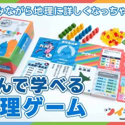 - みなさん、地理って得意でしたか?私は、正直いって大の苦手でした。「地理=暗記」──そう思い込んで、テストのためにひたすら覚えるだけ。でも、そこに“ワクワク”はありませんでした。ところが、大人になっていろいろな土地を訪れるうちに積み重ねられた歴史、特徴的な自然、そしてその土地ならではの食べ物、など、自然と興味がわいてくる経験をしてきました。そんな日常生活に密接に関わる“地理”を「覚える地理」ではなく「楽しむ地理」にしていきたいと思いました。楽しみながら、気づけば都道府県の特徴が頭に残っている。そんな“遊びながら学べる体験”を形にしたのが、このカードゲームです。勉強が得意な子も、苦手な子も。大人も、子どもも。みんなが「へぇ、地理っておもしろい!」と感じられるように。このゲームを通して、みんながわくわくする学びの形を実現していきたいと思っています。