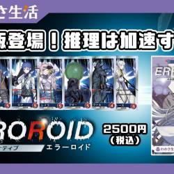 - わかさ生活から、カードゲーム『ERROROID(エラーロイド)』の拡張版がリリースされます!その名も――「オルタナティブ」。英語で「二者択一」を意味するこの言葉の通り、プレイヤーはこれまで以上に“選択”を迫られることになります。拡張版「オルタナティブ」は、基本版に混ぜて遊ぶことが可能。新たに追加された“カード”によって、心理戦がさらに加速します!相手の心を読むか、自分を信じるか――決断が勝敗を左右する!スリル満点の駆け引きを、ぜひ体感してください!🎥 「オルタナティブ」版ルール説明動画はコチラから!