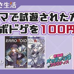 - 【PRカード150枚限定配布!】ゲームマーケット2025秋にて、わかさ生活のボードゲームをご購入いただいた方にブルブルくんが描かれた特別なPRカードをプレゼントします!!先着150名様限定となりますので、ご希望の方はお早めにお越しください!※対象商品ごとにプレゼントされるPRカードは異なるので、ご注意ください。※カードごとに150セットご用意しております。※23日(日)分を確保しておりません。22日(土)に配布終了となる可能性がございます。ご了承ください。※PRカードは、本体の内容物のカードと同じ効果となっている、絵違いのカードとなります。◆花鈴の魔球×1 ↳対象商品:「花鈴のバッティングプラクティス」◆真相解明×2 (先攻用、後攻用) ↳対象商品:「ERROROID」、「ERROROID ~オルタナティブ~」