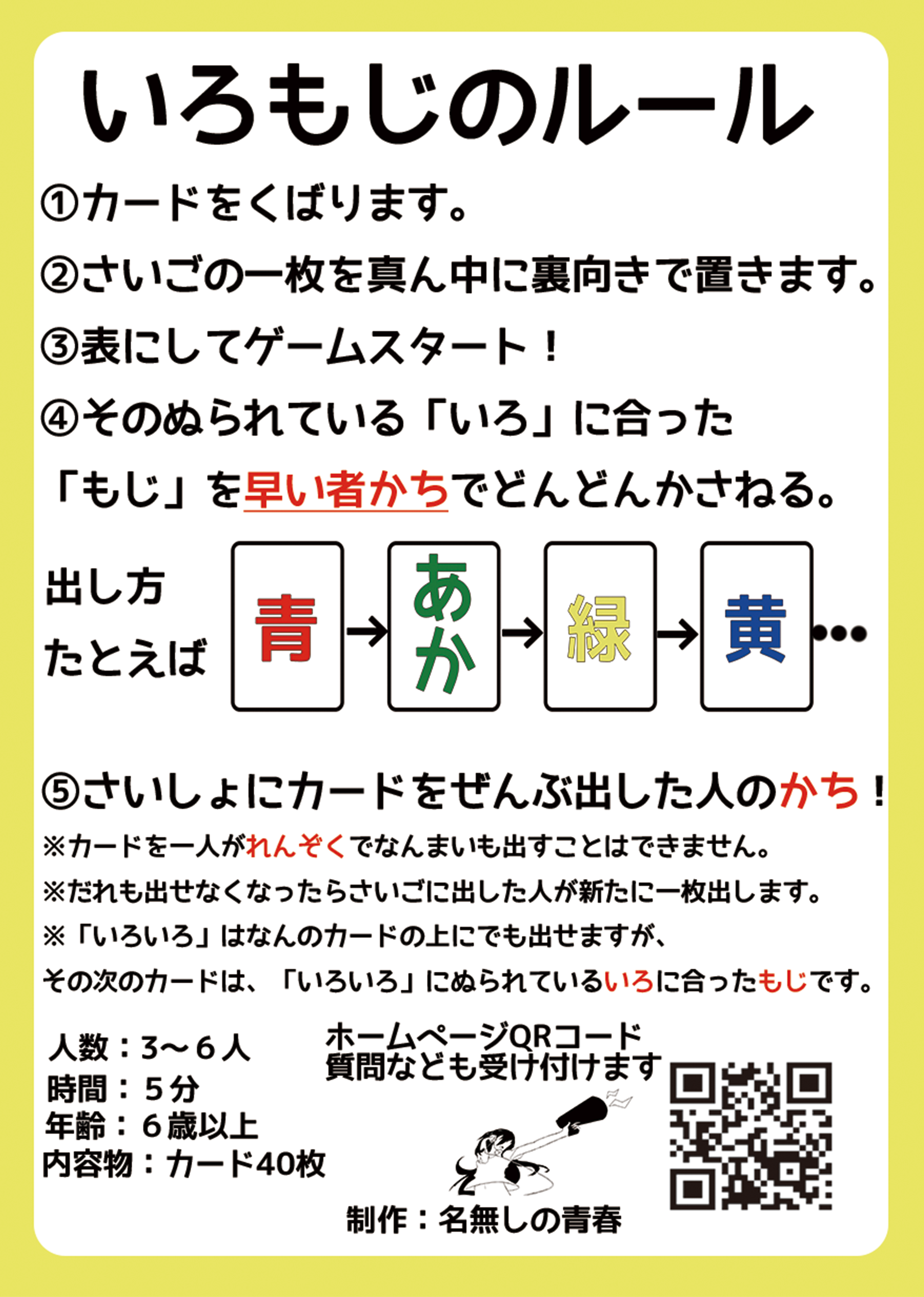 | プレイ人数 | 2〜6人 | プレイ時間 | 〜5分 |