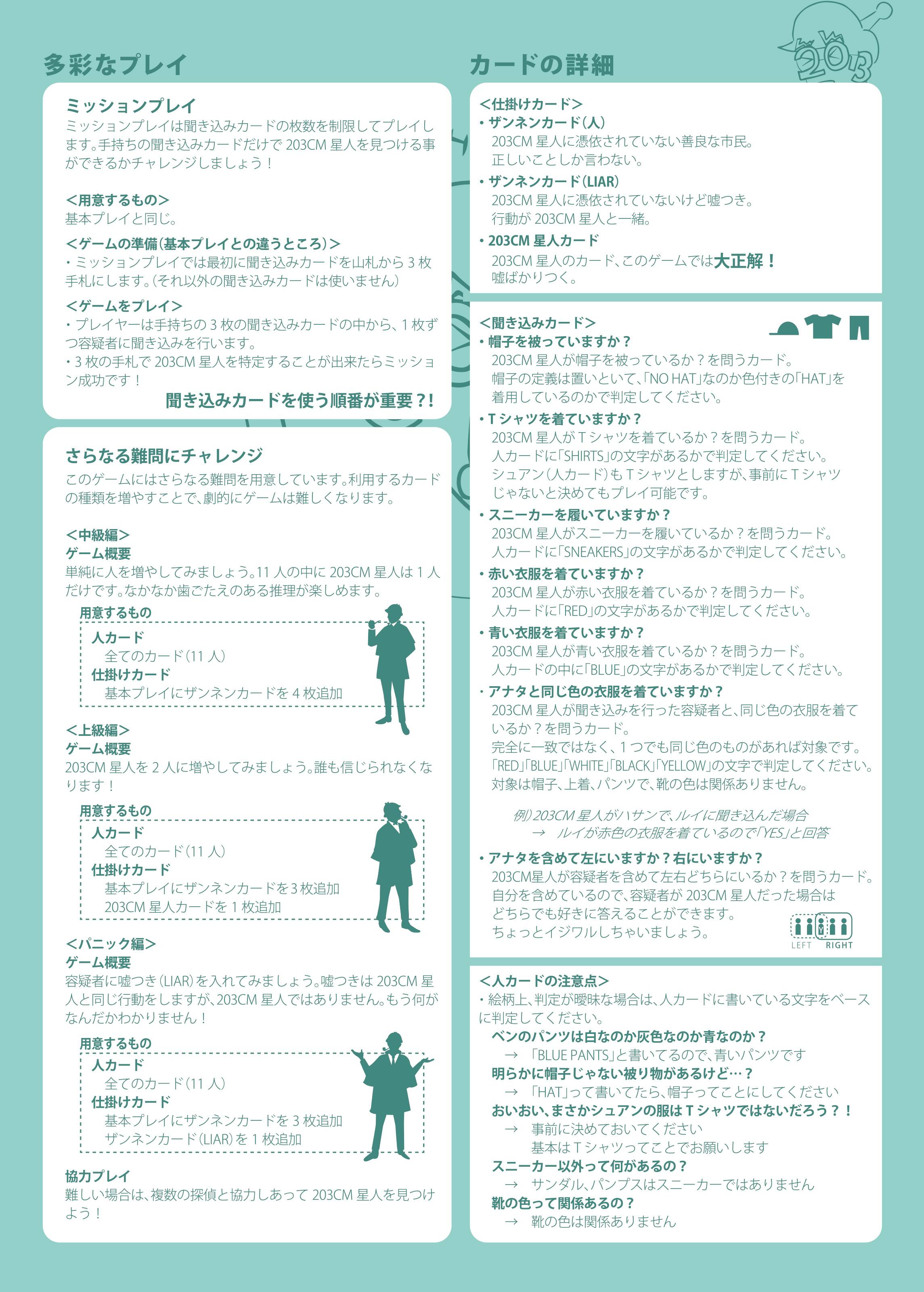 - 容疑者の回答から203CM星人を見つけ出せれば勝ちです