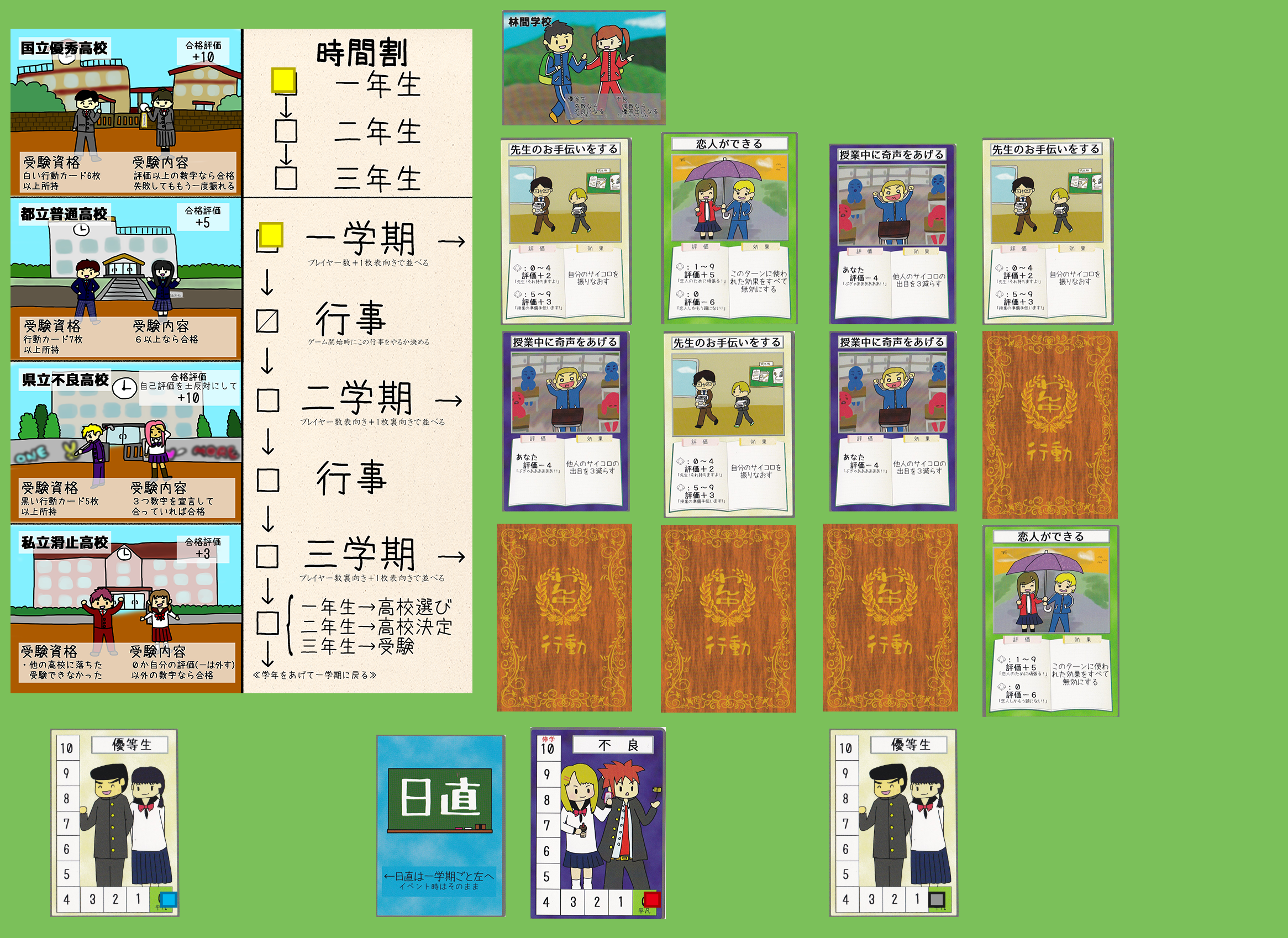 - 高校受験をして最後に一番評価が高いプレイヤーの勝利!