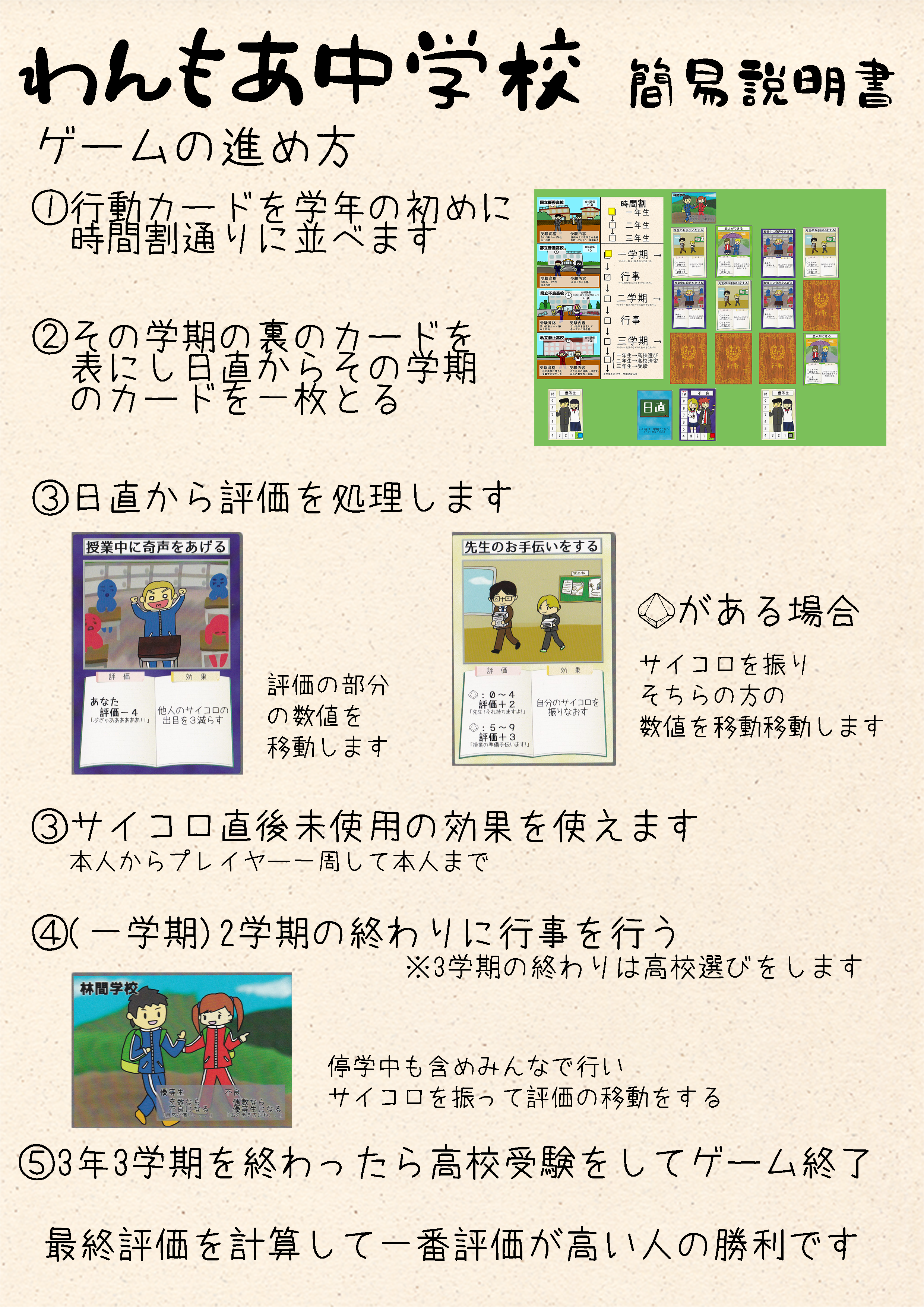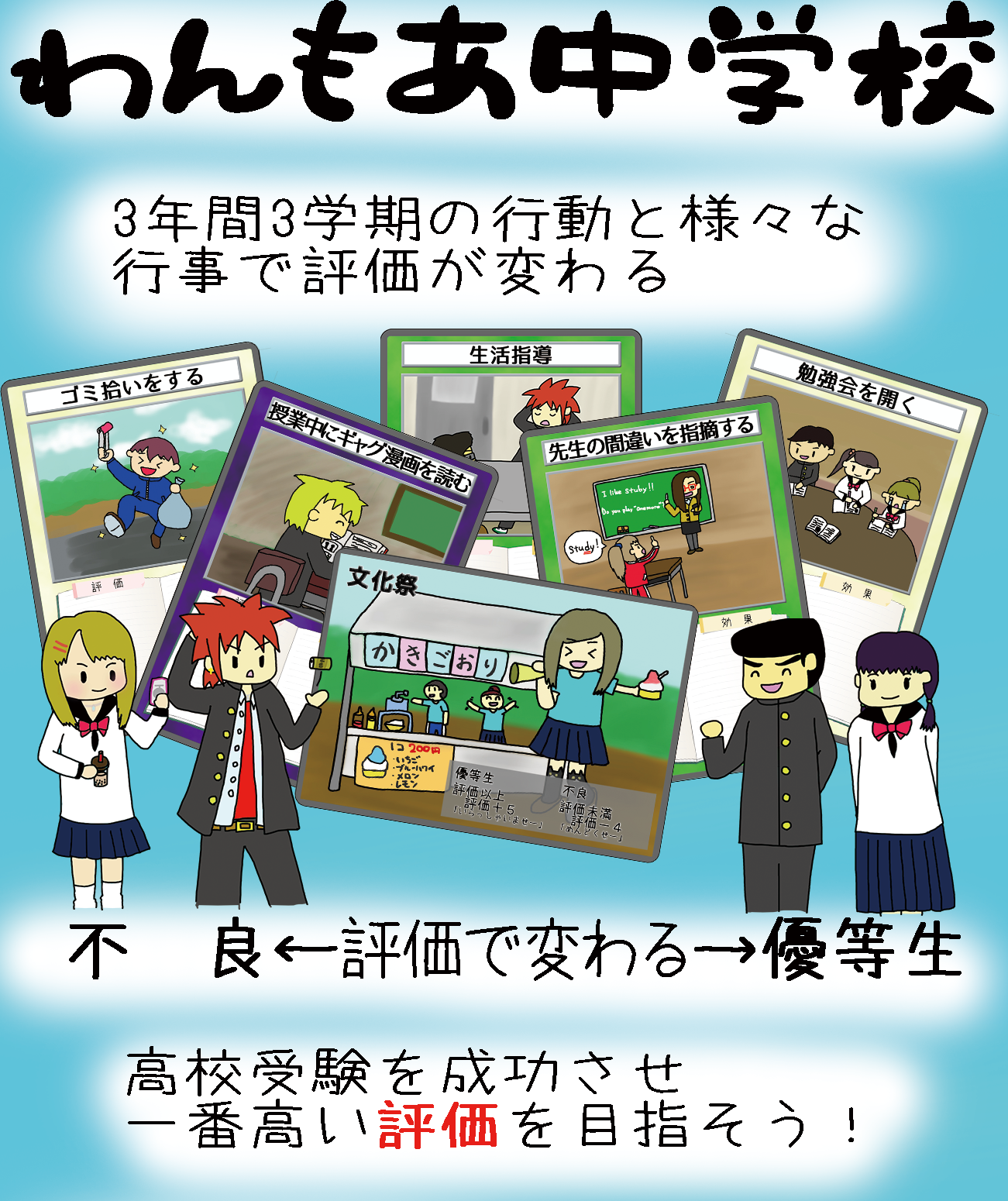 - 3学期3年間行動を選んで評価が変わり優等生か不良になる。