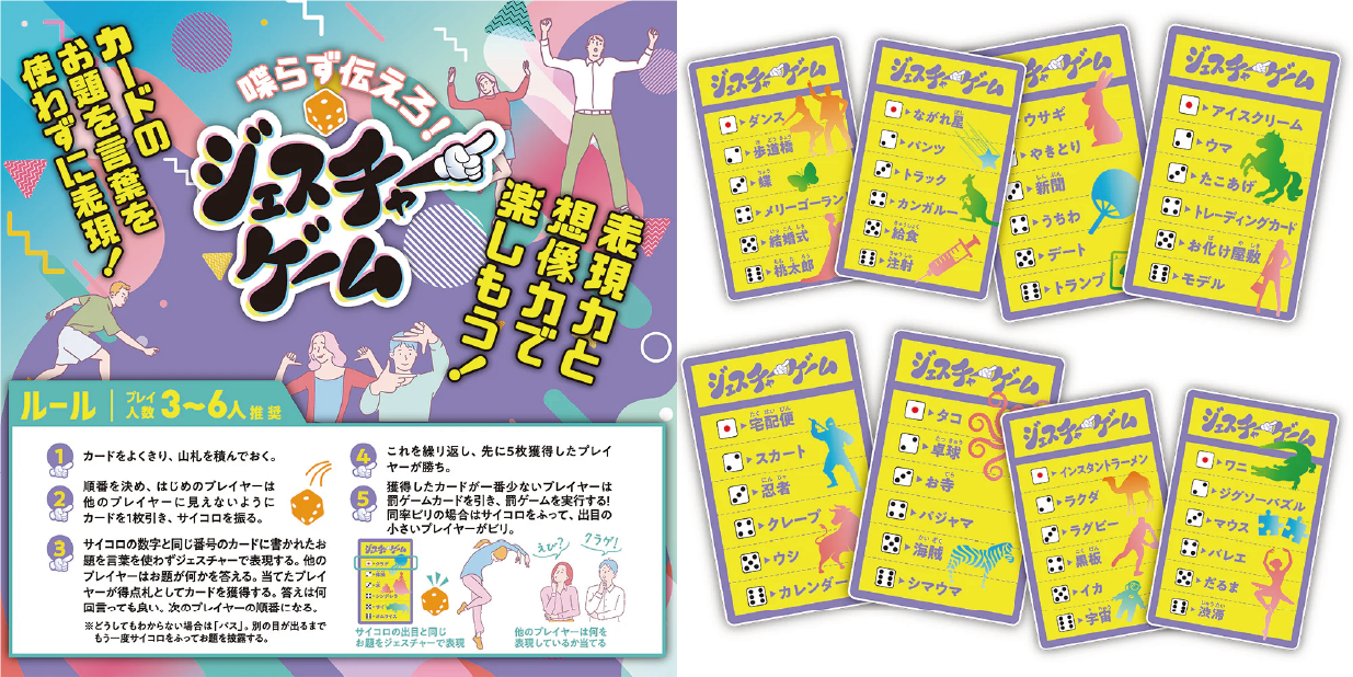 - カードを引いてサイコロを振り、出た目の数字のお題をジェスチャーで表現する。