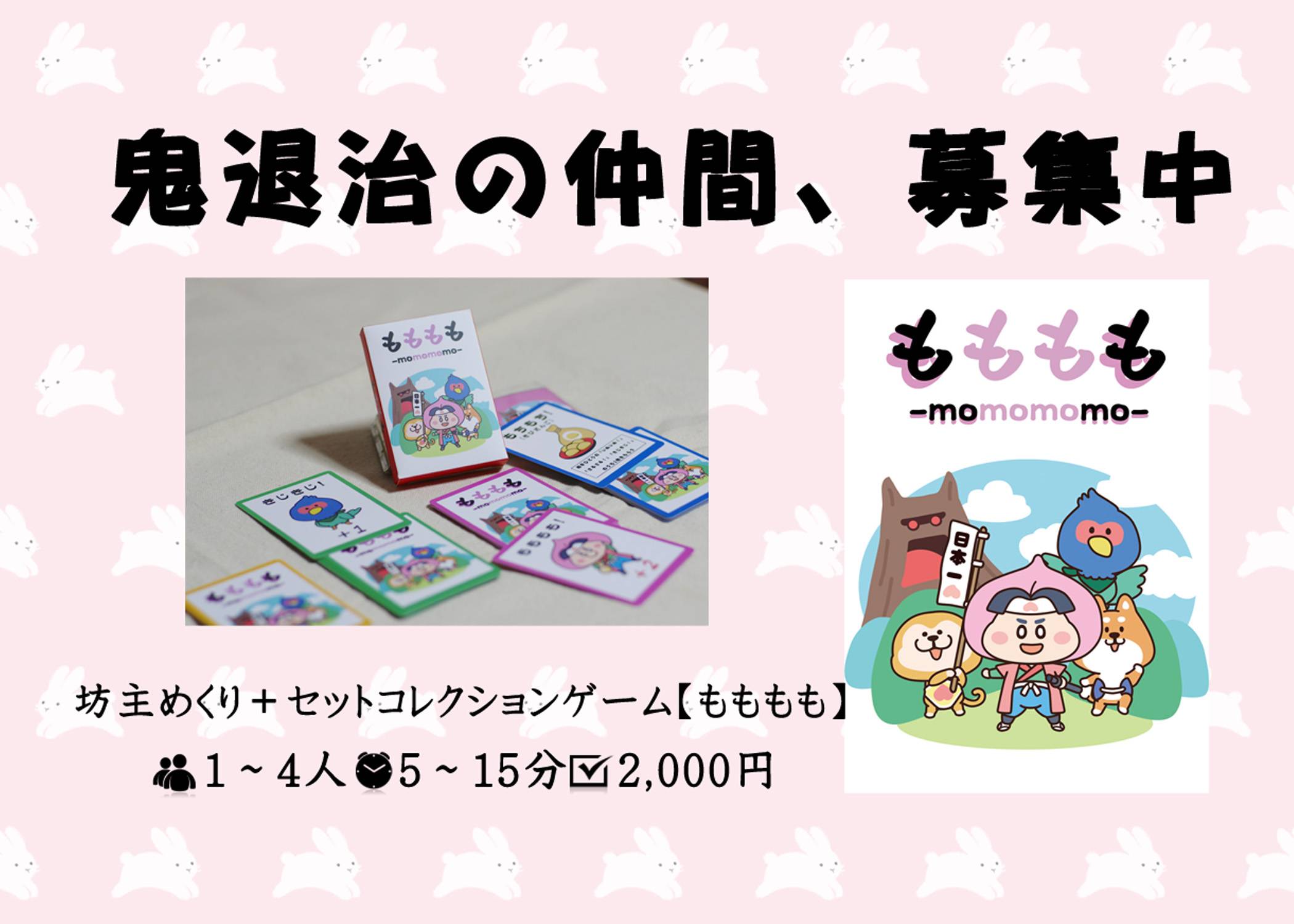 『もももも』は山札の中の桃太郎の仲間を集めて得点を集めるセットコレクションゲームです。