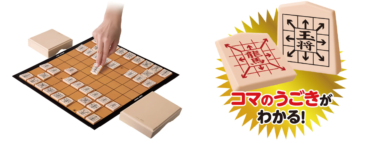 マスター将棋とは… 駒の動かし方が、わかりやすく描かれているので、はじめてでもすぐに遊べる将棋です。 ・動く方向がわかる! ・スタート位置が一目でわかる! ・マスターしたらガイドがはずせる! ・マンガでわかる! 簡単スタートブック付!