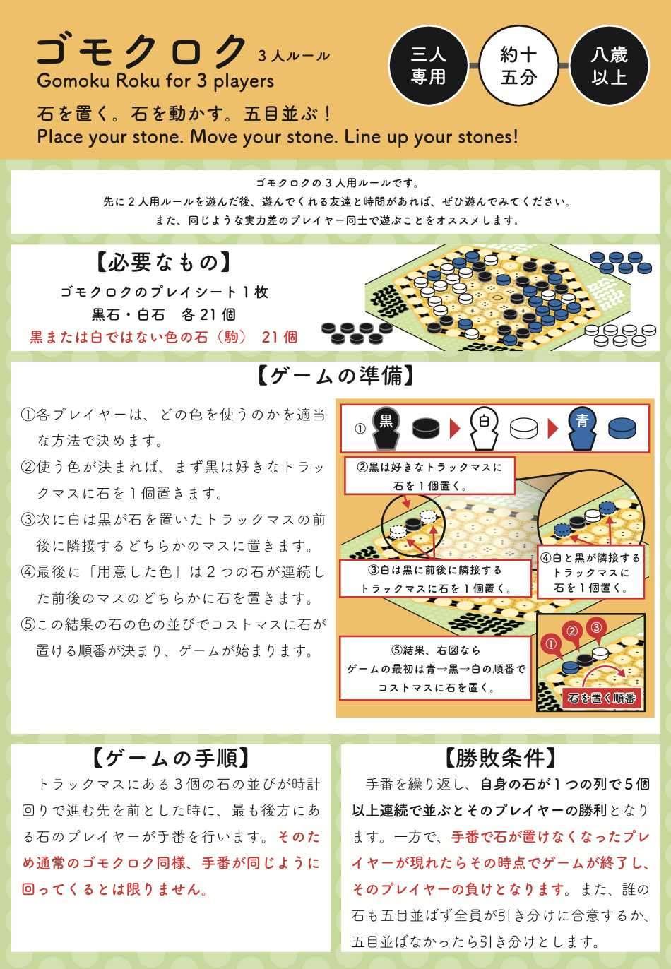 ●3人ルール 追加の石を購入いただくか、ご自宅にある15mmサイズの石を使用いただくことで3人プレイも可能となりました。