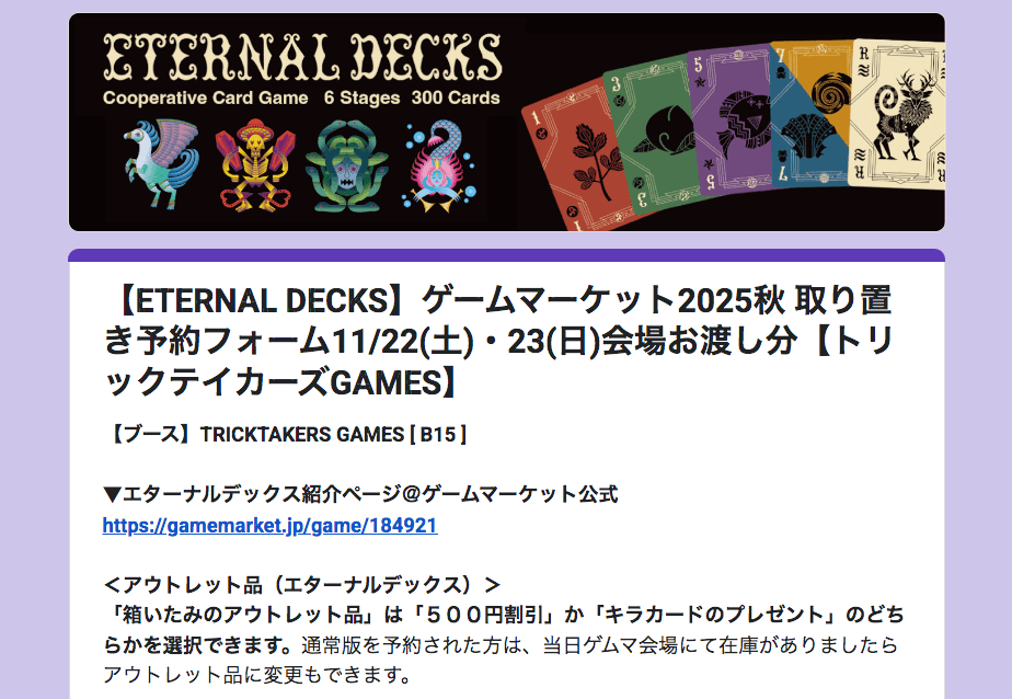ゲームマーケット2025年秋 11/22(土)・23(日) よろしくお願いします