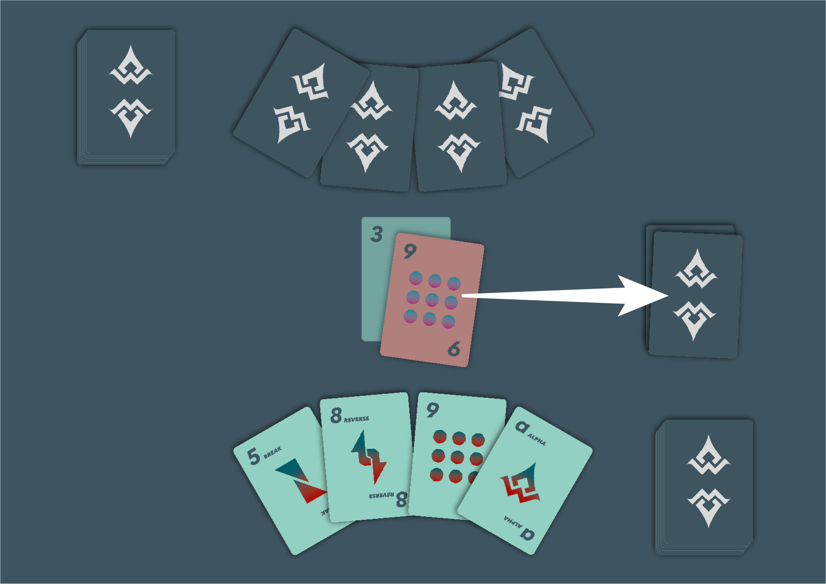 4. パスの後は場がリセットされ、再びカードを引いて新しいラウンドが始まります。