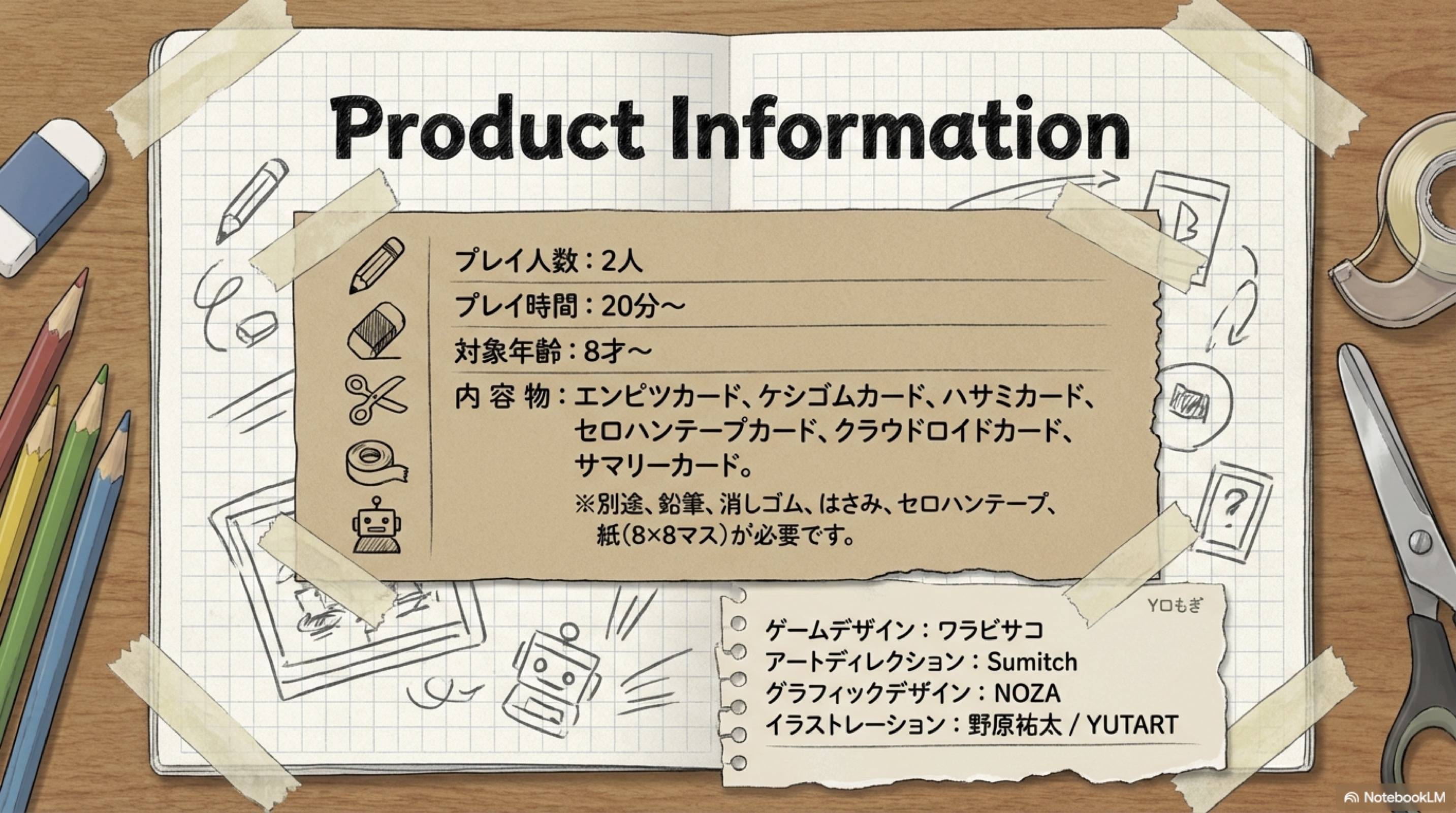 | ゲームデザイン | ワラビサコ | イラスト・DTP | 野原祐太 / YUTART、Sumitch、NOZA |