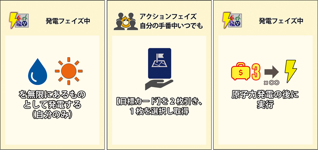 ・「利水権/太陽アイコンを無限にあるものとして発電する(自分のみ)」カード