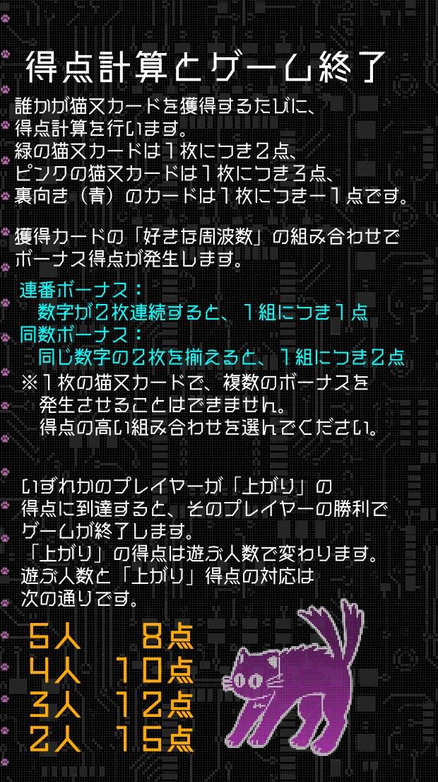 - 回路カードをめくって、周波数をチューニング。猫又をおびき寄せるのだ