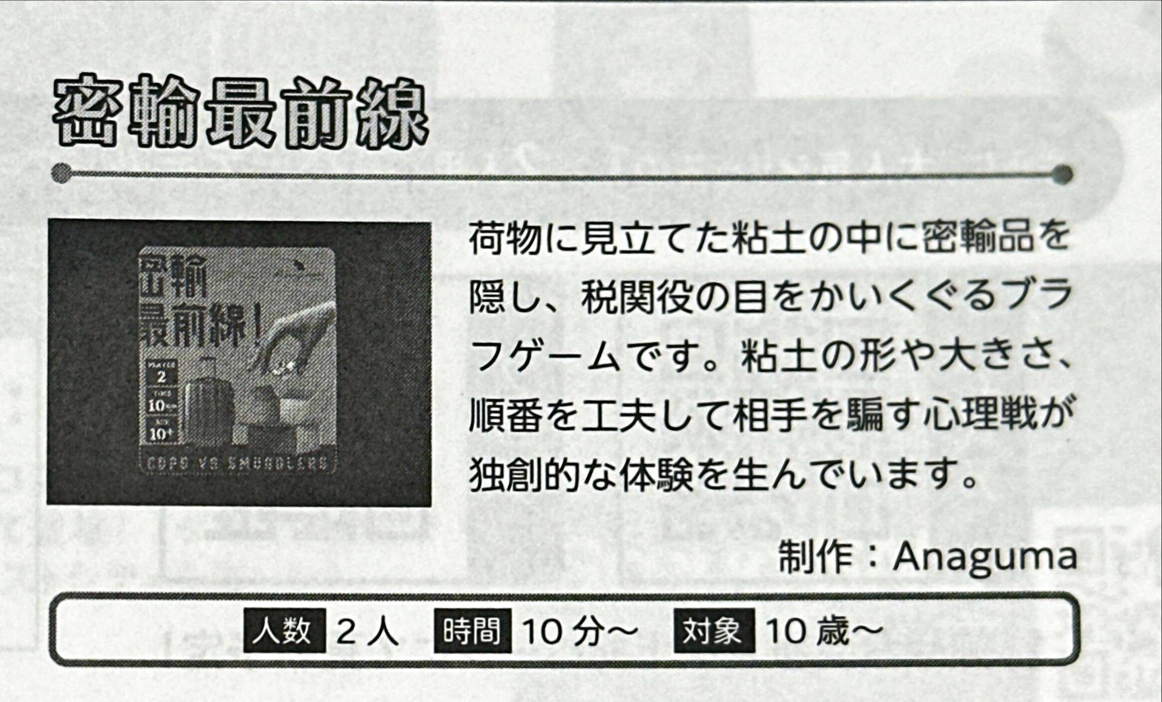 [アークライト・ゲーム賞 佳作受賞]粘土で作った荷物の中に様々な密輸品を隠し、 税関のチェックをかいくぐって密輸を成功させろ!