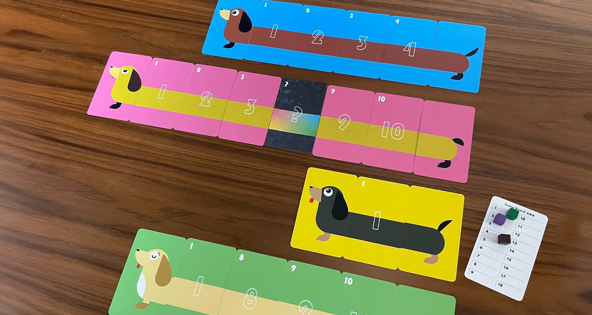 『のびのびダックス』は、1〜10の数字カードをつなげて胴長のダックスフンドを完成させるレースゲーム。手札を早く出し切るかダックスをゴールさせて、最も多くの得点を獲得したプレイヤーが勝者です。