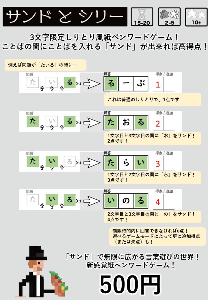 「サンドとシリー」は3文字限定で言葉をつないでいく、しりとりのようなゲームです。