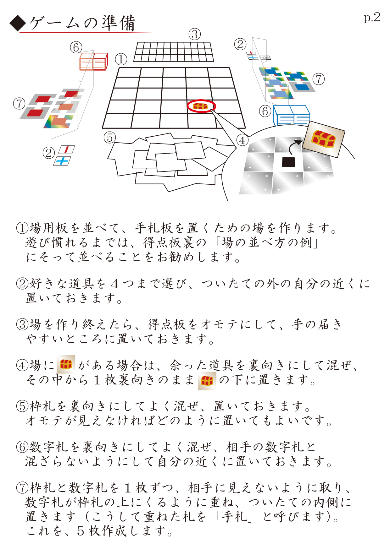 • 手札を置くための「場」は、「場用札」を使って自由に作成できる。