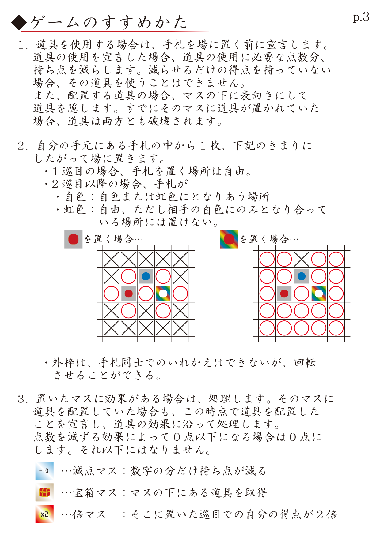 • 場の形状や大きさで決める「規定点数」に先に到達したら勝ち。