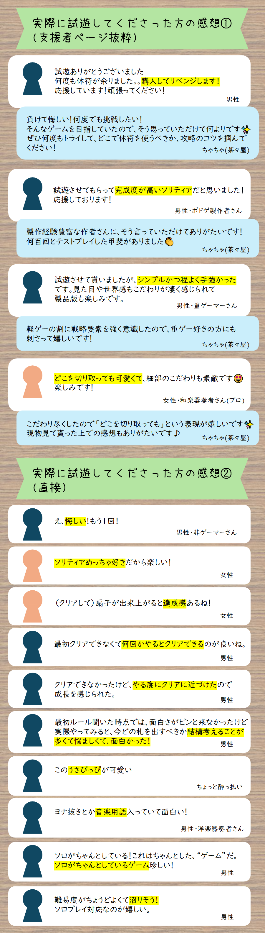 ・試遊した方の声:リベンジしたい/だんだんクリアに近づいてくる/達成感ある/可愛いなど