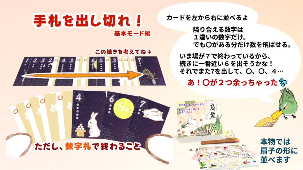 - 映える暇つぶし?!近くの数や遠くの数を行ったり来たりしながら手札出し切りを目指すゲームです。