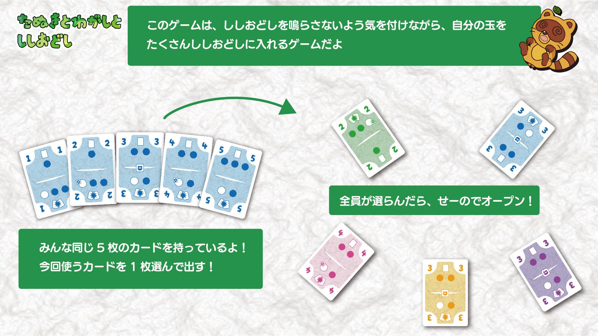 | プレイ人数 | 2〜5人 | プレイ時間 | 15〜20分 |