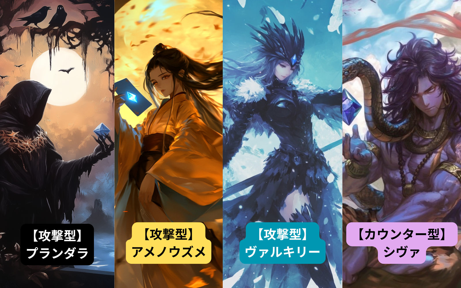 ヴァルキリー→全プレーヤーの手札からランダムで1枚引く。そのうち好きな1枚をもらう。
