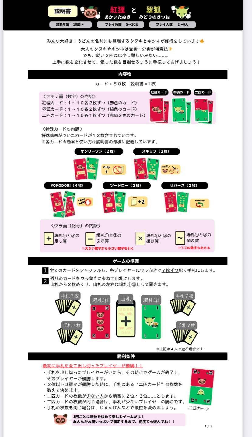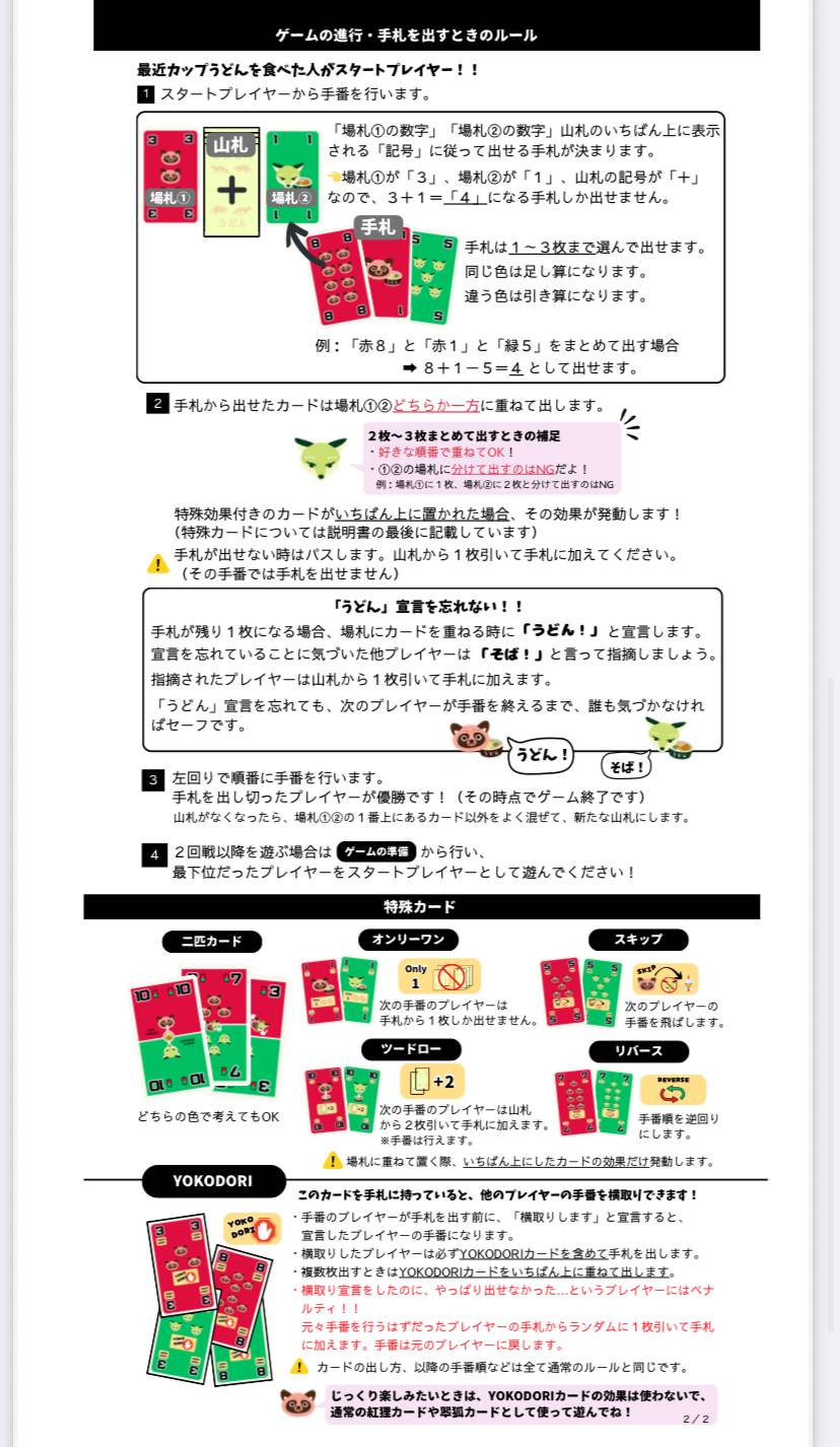 - 同じ色は足し算・違う色は引き算になってしまう。 かわいいタヌキとキツネのカードを使って、ワイワイ楽しめる シンプルなルールのカードゲームです🦊