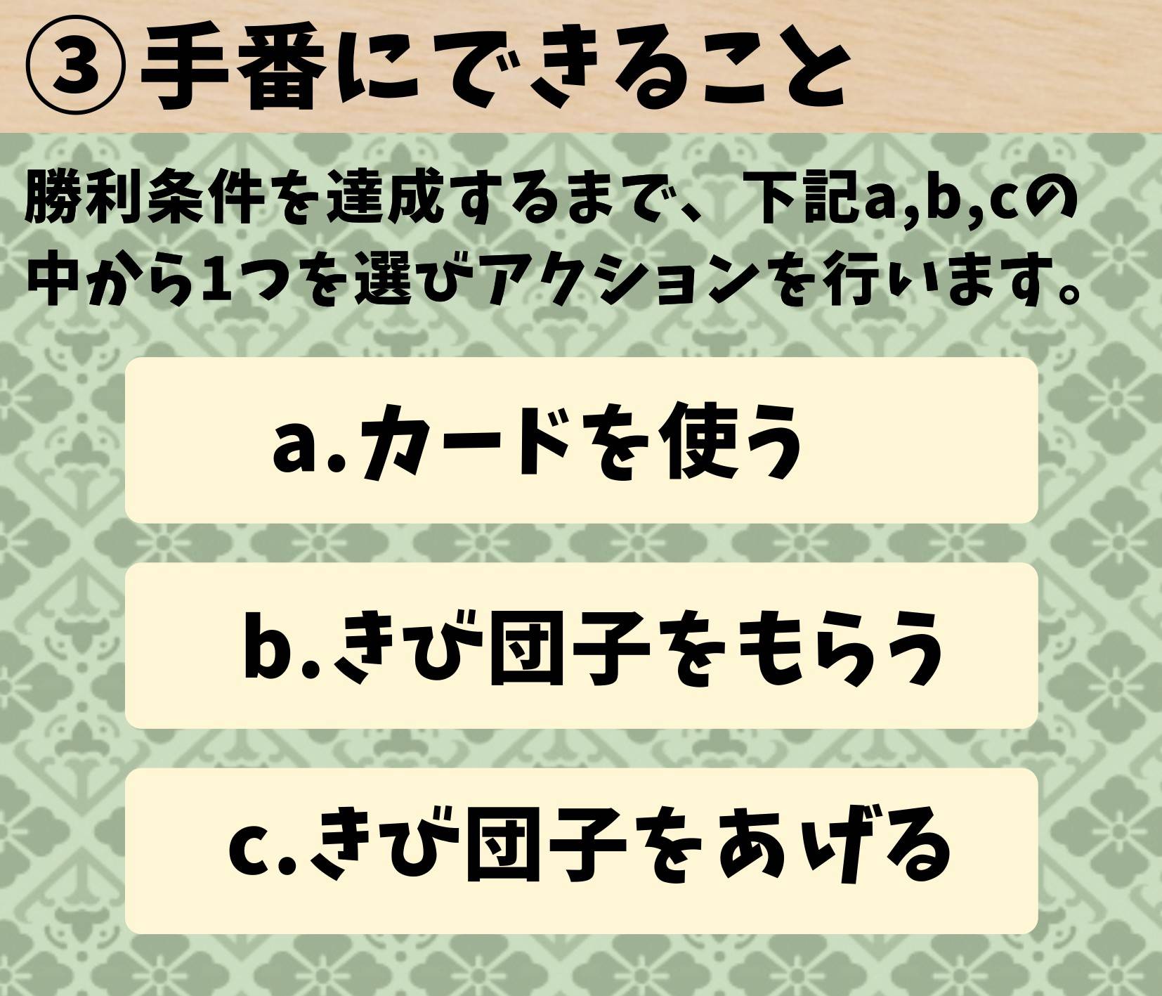 「いぬ」「さる」「きじ」3匹のおともを揃えたら勝ち!